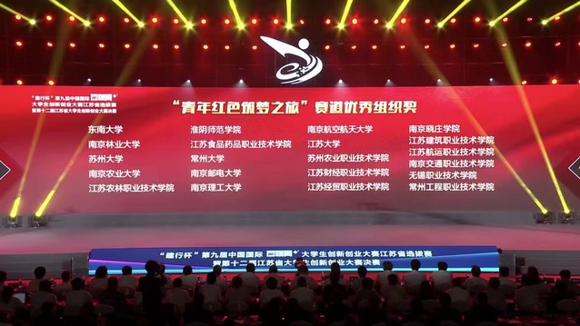 7月18日-20日,第九届中国国际“互联网+”大学生创新创业大赛江苏省选拔赛暨第十二届江苏省大学生创新创业大赛总决赛在南京林业大学举行。学院成功晋级省赛并与众多本科院校同台竞技,最终斩获“红旅赛道”二等奖1项、三等奖1项。因组织工作得力,学院被大赛组委会授予青年红色筑梦之旅赛道“优秀组织奖”。