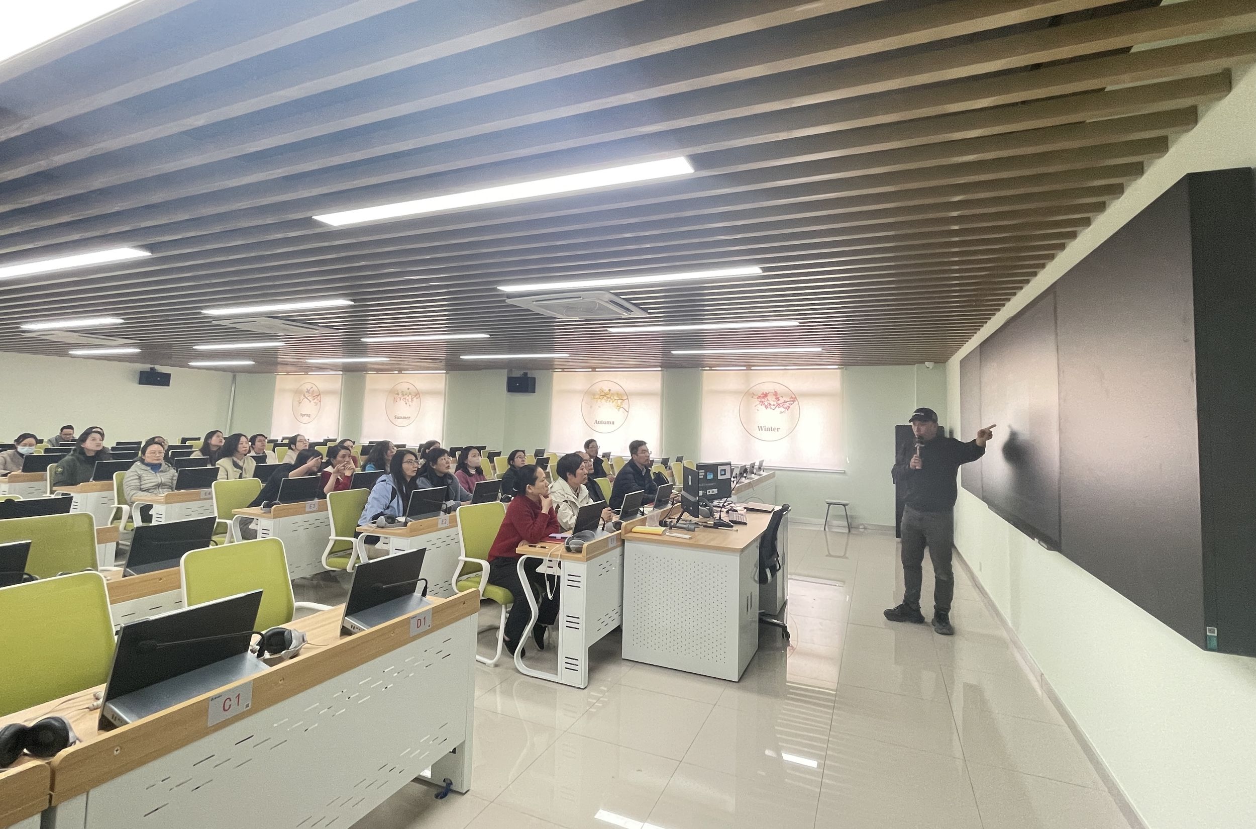 历经半年的建设,学校2024年立项建设的语言智慧实训室投入使用。4月2日下午,基础教学部(国合办)组织全体英语教师及实训室管理人员于明德楼502教室参加最新建设的智慧语言实训室使用培训。