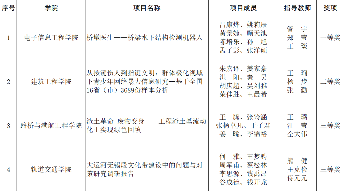 前期,经学院选拔、校内评审、省赛网评等环节,我校来自电子信息工程学院、建筑工程学院的2件作品入围省赛终审决赛。在决赛答辩评审环节,项目团队自信昂扬、表现出色,充分展示了交院青年青春奋进的精神风貌,最终收获一等奖1项、二等奖1项的优异成绩,学校其他2件参赛作品荣获三等奖。