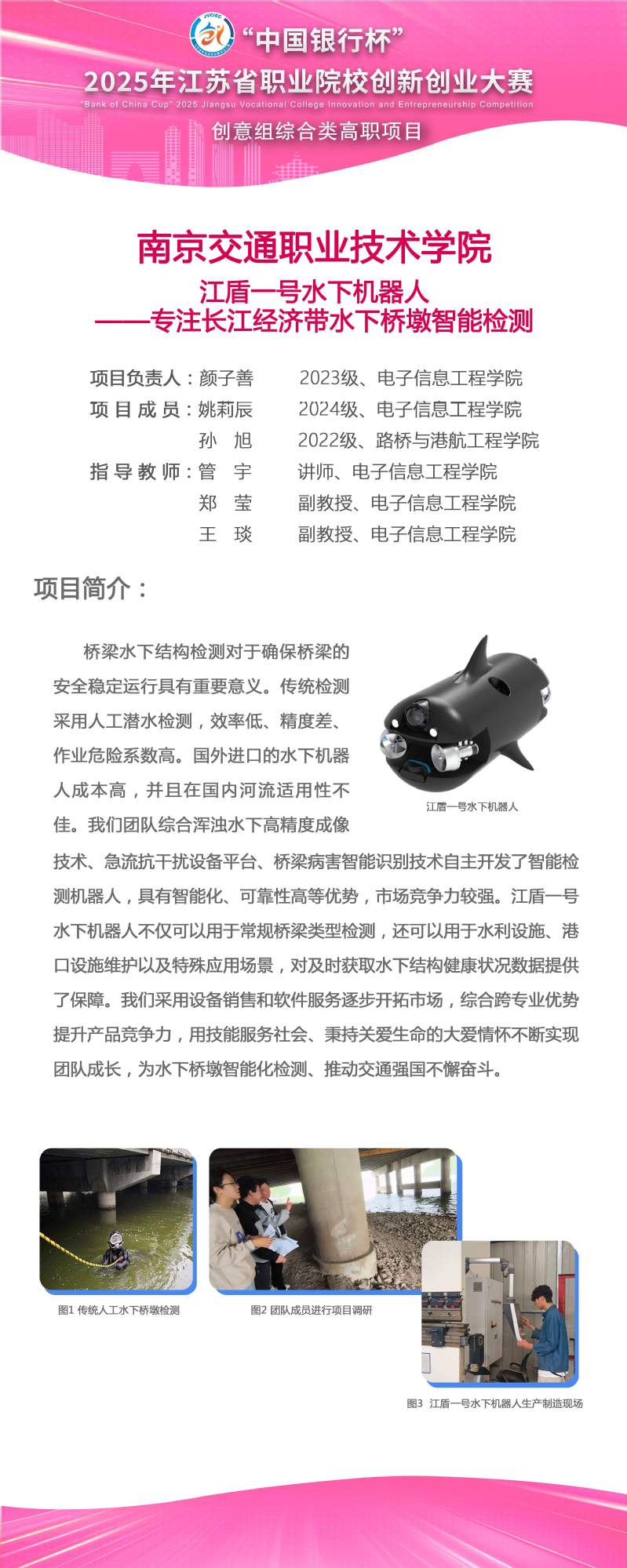 2025年江苏省职业院校创新创业大赛银奖项目-江盾一号水下机器人——专注长江经济带水下桥墩智能检测