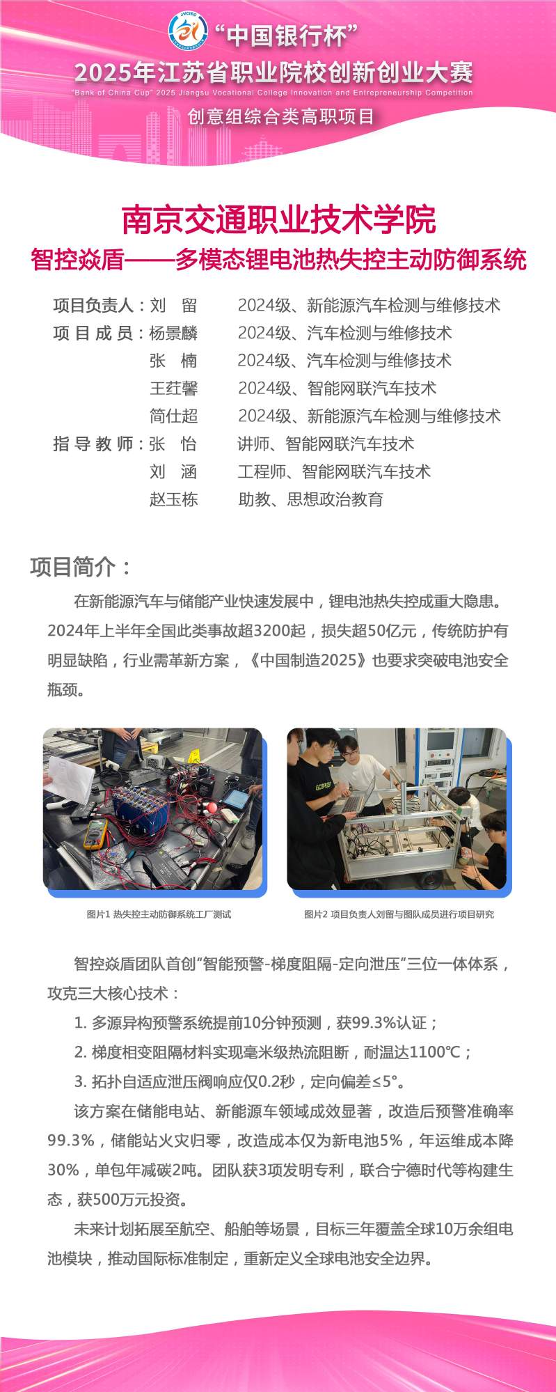 2025年江苏省职业院校创新创业大赛银奖项目-智控焱盾——多模态锂电池热失控主动防御系统