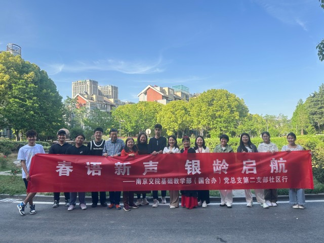 4月25日下午,基础教学部(国合办)党总支第二党支部部分教师党员及中外学生志愿者走进江宁区淳化街道科宁社区开展“春语新声·银龄启航”社区老年教育志愿活动。